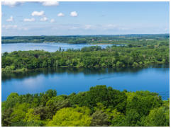 Sanfte Huegel sowie zahlreiche Seen und Fluesse praegen die durch die letzte Eiszeit geformte Landschaft.