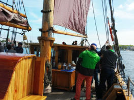 Geniessen Sie die besondere Atmosphaere an Bord des Schiffes. Wer mag, kann die Skipper