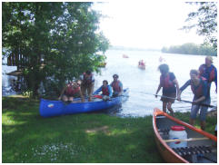 in 4-Personen-Kanus eine mit Bojen abgesteckte Strecke in einer moeglichst schnellen Zeit zu absolvieren.
