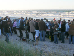Eine Betriebsfeier auf dem Schiff und am Ostseestrand von Travemuende.