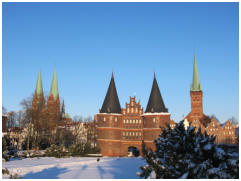Direkt vor dem ueber die Grenzen hinaus bekannten Wahrzeichen Luebecks, dem Holstentor,