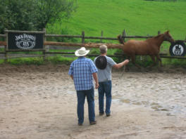 Zu Beginn zeigt Ihnen unserer erfahrener Westernreitlehrer im Round-Pen , wie die Kommunikation