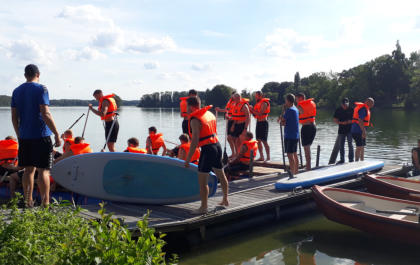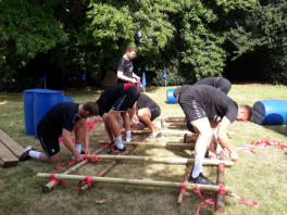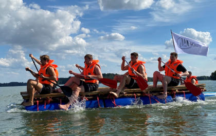 Auf dem Gelaende der Gustav-Heinemann-Bildungsstaette in Bad Malente am Kellersee haben wir fuer den THW Kiel im Rahmen der Saison- vorbereitung 2020 / 21 ein Teambuilding organisiert und durchgefuehrt. Ausgewaehlt haben die THW-Verantwortlichen unser Teambuilding ‚Flossbau und Teamspiele‘. Bei allerbestem Sommerwetter startete unser Trainer Andreas Koester das Programm mit einem koordinativen Teamspiel. Gut aufgewaermt ging es danach an die eigentliche Aufgabe, dem Bau zweier Floesse mit anschliessender Wettfahrt ueber den See. Dazu wurden die Teams „Alt“ und „Jung“ gebildet. Als kleine Zusatzaufgabe galt es, den jeweils Teamaeltesten auf einem SUP-Board hinterherzuziehen. Je Team wurde eine THW-Fahne verteilt, die waehrend der gesamten Wettfahrt sichtbar im Fahrtwind zu wehen hatte. Nachdem beide Teams von unserem Trainer Klaus Kluender mit der Knotentechnik vertraut gemacht wurden, startete bereits in der Bauphase ein heisser Fight um die beste Konstruktion. Am Ende hatte das Team „Alt“ u.a mit Steffen Weinhold, Patrick Wiencek, Pavel Horak, Hendrik Pekeler und Domagoj Duvnjak nicht nur beim Flossbau gegen Team „Jung“ u.a. mit Rune Dahmke und Sven Ehrig die Nase vorn. Auch die Wettfahrt mit dem Floss konnte Team ‚Alt‘ fuer sich entscheiden. Beim abschliessenden, von uns exklusiv am Seeufer angerichteten Buffet fand die Mannschaft um die Trainer Filip Jicha und Christian Sprenger sowie Athletiktrainer Hinrich Brockmann inmitten der sehr anstrengenden Saisonvorbereitung ein wenig Entspannung.