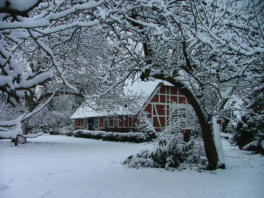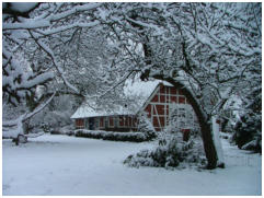 Sie angemieteten und weihnachtlich geschmueckten historischen Kate.